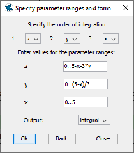 Tools≻Tasks≻Browse: Calculus - Multivariate≻Integration≻Multiple Integration≻Cartesian 3-D