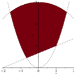 with⁡plots:inequalx2−y<0,x2+y2<9,0<3⁢y−x−2,x=−2..2,y=0..3,color=Niagara 1