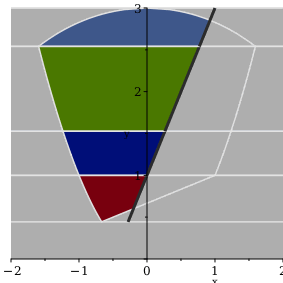 inequal⁡map⁡t→t[],0≤y−2⁢x−1,ineqs,x=−2..2,y=0..3,optionsfeasible=color=Niagara 1,color=Niagara 2,color=Niagara 3,color=Niagara 4,optionsopen=color=Mono 2,thickness=1,optionsclosed=color=Mono 1,thickness=3,optionsexcluded=color=Mono 5