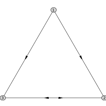 T≔Graph 1: a directed graph with 3 vertices and 4 arcs