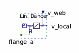 The Tension Control for a Linear Dancer component needs a 1D translational mechanics connection to the prismatic joint of the dancer to measure the dancer position. Internally a LimPID component is used. The output of the controller is an offset for the defined speed of the web line.