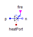 The Ideal GTO Thyristor (or Ideal GTOThyristor) component models a gate turn-off thyristor with an off-state conductance, Goff, and an on-state resistance, Ron. The parameter Vknee sets the voltage which commutates the thyristor. If Vknee<v, a true value on the Boolean gate input, fire, causes the device to go to the on-state, while a false value causes the device to go to the off-state. If vVknee, the device is in the off-state.