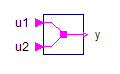 The 2-port Boolean Multiplexer component combines the input signals, u1and u2, in an output signal, y.