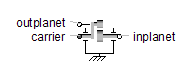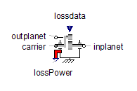 The Planet Planet Gear component models a set of carrier, inner planet, and outer planet gear wheels with a specified gear ratio without inertia, elasticity, or backlash. The inertia of the gears and carrier may be included by attaching Inertia components to the ‘inplanet’, ‘outplanet’, or ‘carrier’ flanges respectively. The damping in the bearing connecting the planet(s) to carrier can be included via the component options. Bearing friction on the ‘inplanet’, ‘outplanet’, and ‘carrier’ shafts may be included by attaching Bearing Friction component(s) to these flanges.