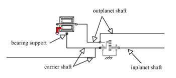 Note 2: When attaching a bearing friction component to the outer planet shaft to represent outplanet/carrier bearing friction, the configuration shown in the figure below should be used to correctly account for the relative velocity of the outer planet with respect to the carrier.