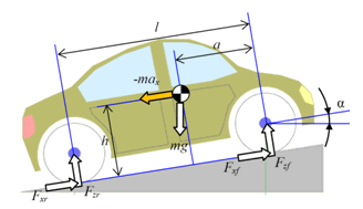 Where s is the longitudinal DOF of the vehicle, l is the vehicle wheel base, and a is the distance from the front axle to the projection point of the vehicle CG onto the line connecting front and rear axles