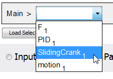 In the Subsystem Selection section, select the SlidingCrank1 subsystem from the drop-down menu in the toolbar above the model diagram. This menu displays all of the subsystems and components in your MapleSim model.