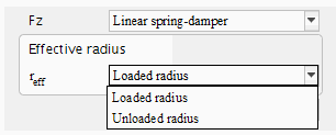 With this option selected for Fz, the user can choose between the tire unloaded radius, R0, and the loaded radius, rL, to assign to the effective radius, reff.