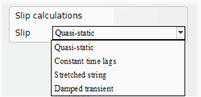 Four options are available for tire slip calculation, Quasi-static, Constant time lags, Stretched string, and Damped transient.