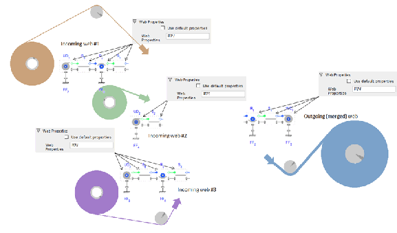 Use the Multi-Web Roller In component to define the entry configuration for each of the merging webs. Use the provided frames to have all partial roller components at the same location!