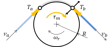When the Include slippage option is selected, the icon changes (as shown above) to indicate additional dynamics included in the Roller component. The difference between entry and exit tensions is given by: