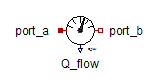 The Heat Flow Sensor component monitors the heat flow rate flowing through it. This component assumes an ideal situation; no energy is lost between the ports. The output signal is positive if the heat flows from input port a to port b.