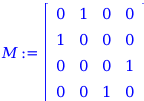 M≔Matrix⁡0,1,0,0,1,0,0,0,0,0,0,1,0,0,1,0