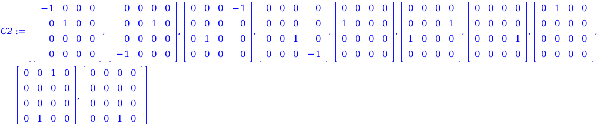 B2≔map⁡Matrix,0,−1,0,0,1,0,0,0,0,0,0,0,0,0,0,0,0,0,1,0,0,0,0,0,1,0,0,0,0,0,0,0,0,0,0,1,0,0,0,0,0,0,0,0,1,0,0,0,0,0,0,0,0,0,1,0,0,1,0,0,0,0,0,0,0,0,0,0,0,0,0,1,0,0,0,0,0,1,0,0,0,0,0,0,0,0,0,0,0,0,0,−1,0,0,1,0