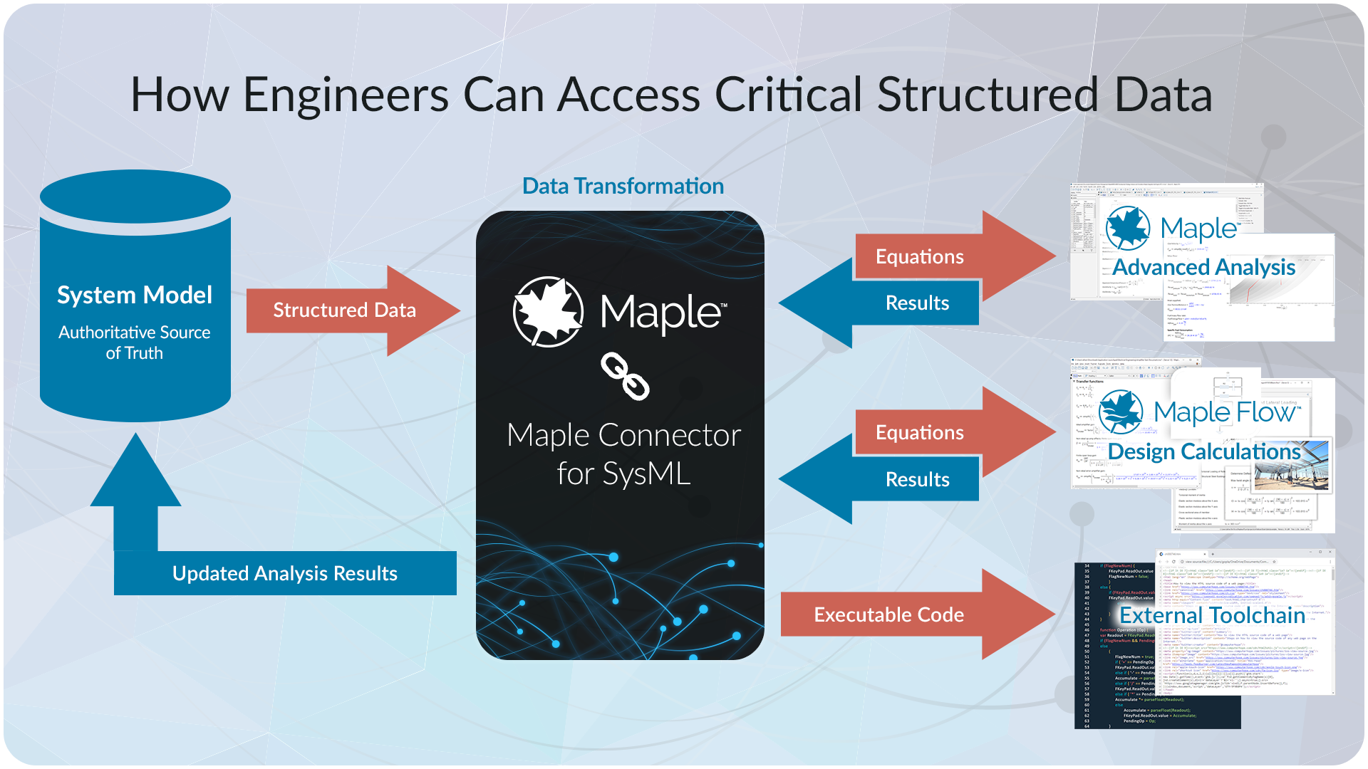By utilizing Maple as the transformation layer for SysML structured data, engineers can now parse reliable design information into downstream analyses to support informed design decisions.